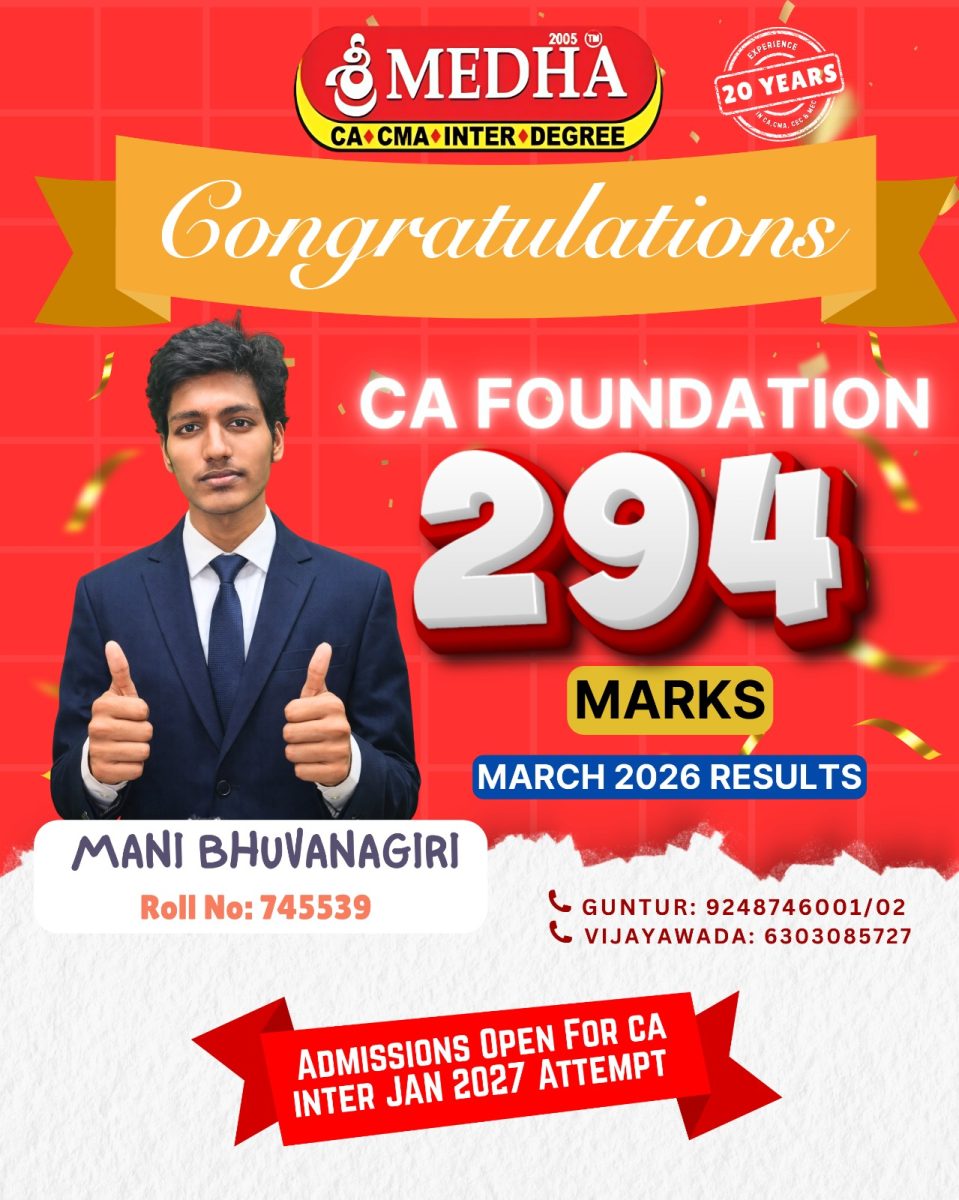 Intermediate MEC / CEC Unit Test – 2 Toppers Receiving Gold, Silver, Bronze Medals by CA Anna Nanda Kishore Sir